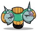 一个有静态“诶呀”表情的巨大丰碑顶部。