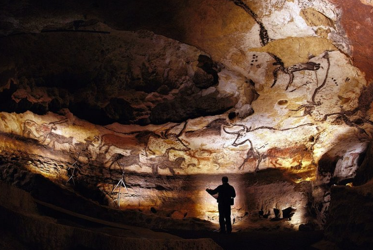首领停住了脚步,他们正站在一个高大的洞穴大厅中,首领举起火把,人们看清楚了,洞壁上到处都是栩栩如生的动物和狩猎的场景。